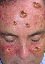обычно поражают кожу лица, спины, груди и предплечий. Склонность